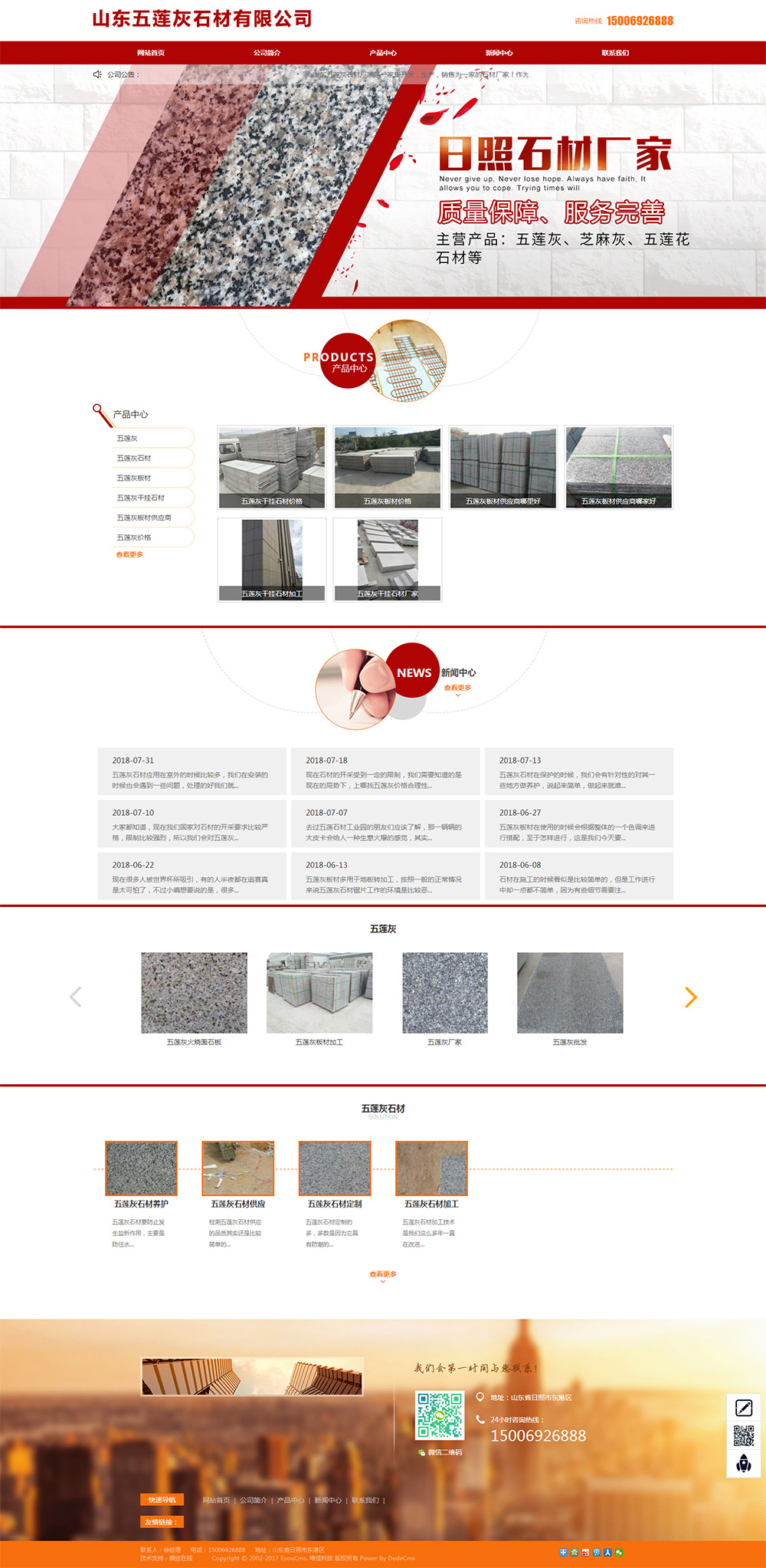 • 我們位于山東省日照市五蓮縣石材產(chǎn)業(yè)園內(nèi),是一家主要生產(chǎn)五蓮紅石材、五蓮紅火燒板石材的廠家,是一家比較受歡迎的五蓮紅路沿石廠家,我們公司資源豐富、設(shè)備先 進(jìn)、科技力量雄 厚,能夠高 標(biāo)準(zhǔn)的完成規(guī)格板及各 種異型石制品的加工,除了路沿石系列石材以外,還可生產(chǎn)三十多個(gè)花色品種的花崗石大規(guī)格板光板、火燒板及蘑菇石,產(chǎn)品以上 乘的質(zhì)量、優(yōu) 惠的價(jià)格以及公司良好的信譽(yù),暢 銷 全 國各地. 我們公司的發(fā)展里邊就是客戶第 一,誠信務(wù)實(shí),創(chuàng) 新發(fā)展,在正確的思路引導(dǎo)下,我們引進(jìn)多的優(yōu) 秀人才及技 術(shù)人員,完善整體上的